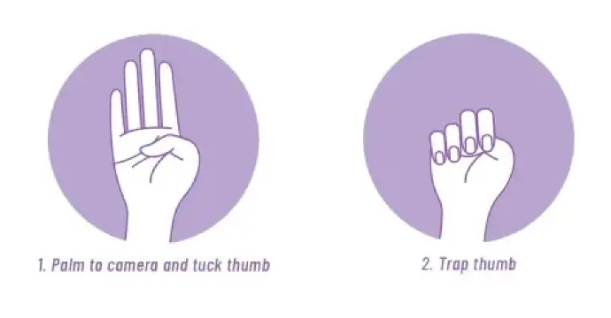 Een discreet handgebaar (de handpalm getoond, de duim naar binnen geplooid en vervolgens de vingers over de duim gesloten) werd populair gemaakt om slachtoffers van huiselijk geweld de kans te geven alarm te slaan over hun situatie, met name tijdens videogesprekken of in het openbaar.